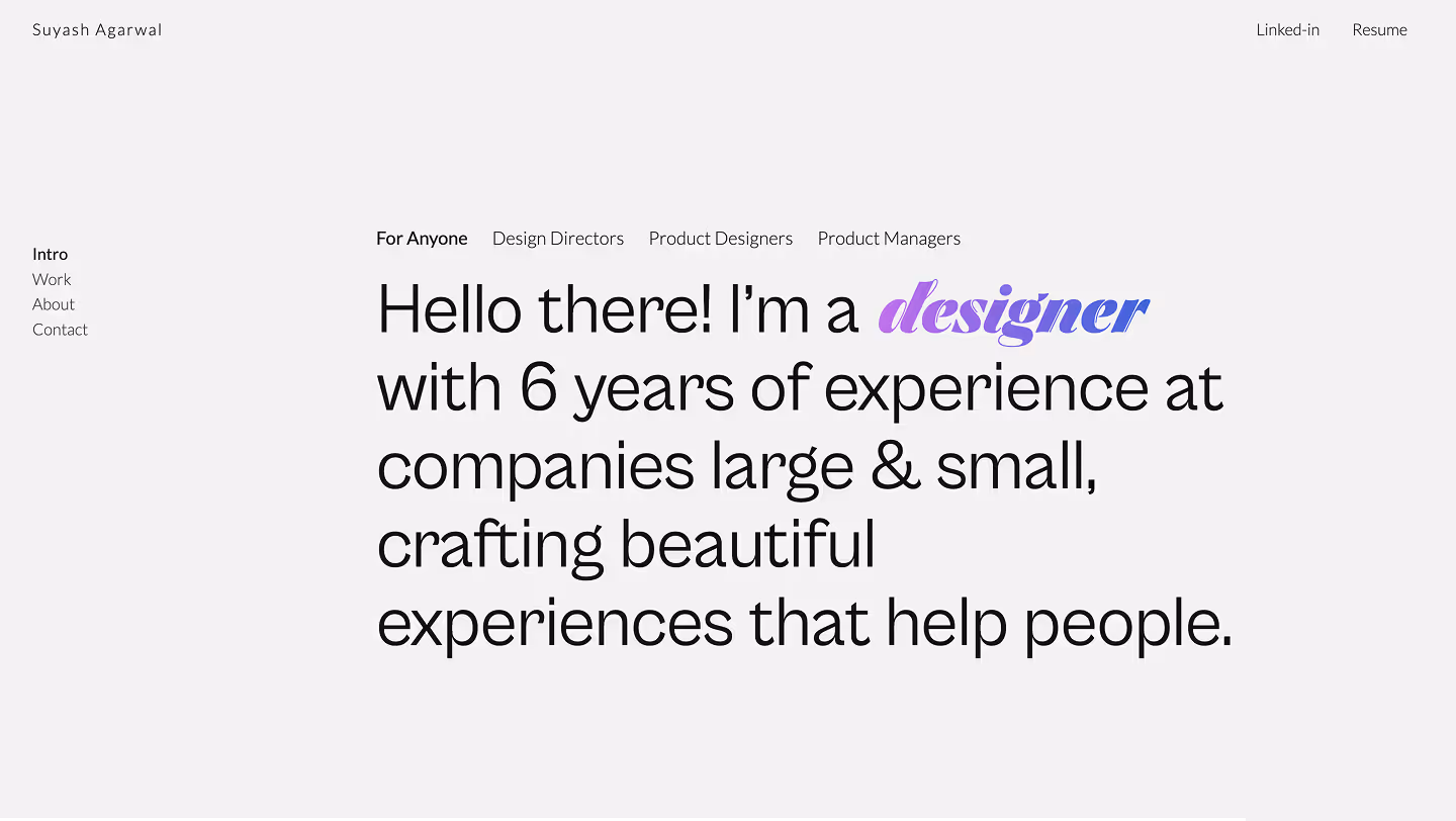 Suyash Agarwal is a Senior Product Designer with experience at Eka Care and MakeMyTrip, specializing in product design, design thinking, and user experience design. With expertise in system thinking, design systems, and user research, Suyash focuses on building scalable and user-centric digital products. 🚀 Explore Suyash Agarwal’s portfolio for thoughtful and impactful design solutions.